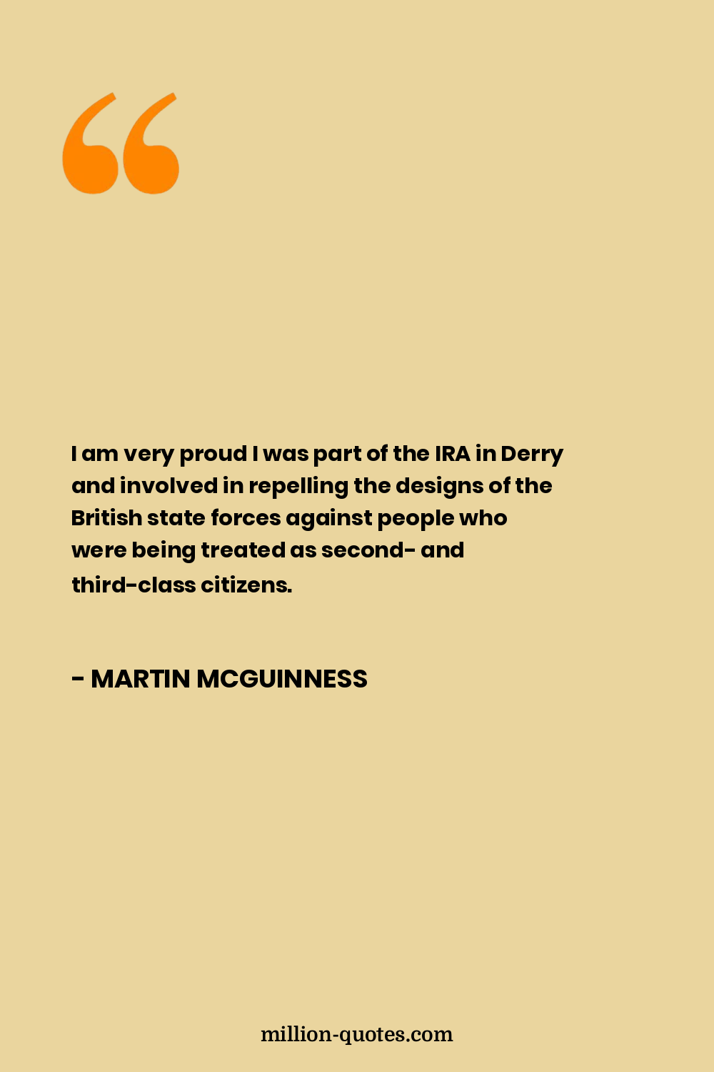 I am very proud I was part of the IRA in Derry and involved in repelling the designs of the British state forces against people who were being treated as second- and third-class citizens.