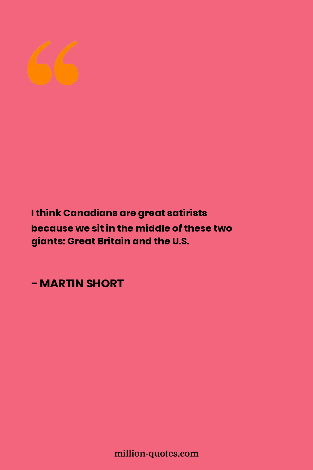 I think Canadians are great satirists because we sit in the middle of these two giants: Great Britain and the U.S.