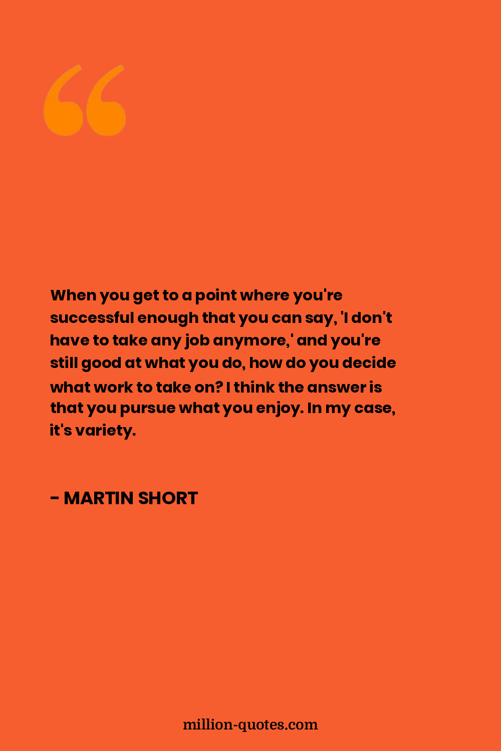 When you get to a point where you're successful enough that you can say, 'I don't have to take any job anymore,' and you're still good at what you do, how do you decide what work to take on? I think the answer is that you pursue what you enjoy. In my case, it's variety.