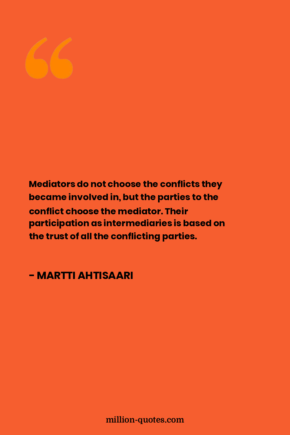 Mediators do not choose the conflicts they became involved in, but the parties to the conflict choose the mediator. Their participation as intermediaries is based on the trust of all the conflicting parties.