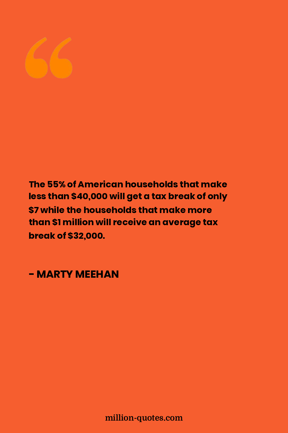 The 55% of American households that make less than $40,000 will get a tax break of only $7 while the households that make more than $1 million will receive an average tax break of $32,000.