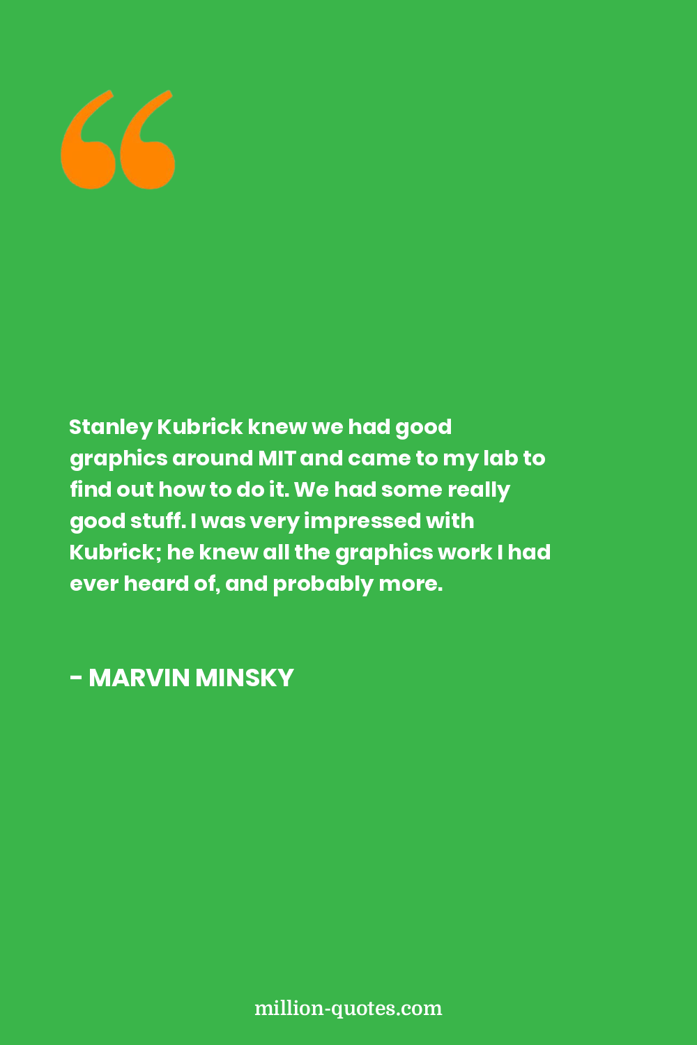 Stanley Kubrick knew we had good graphics around MIT and came to my lab to find out how to do it. We had some really good stuff. I was very impressed with Kubrick; he knew all the graphics work I had ever heard of, and probably more.