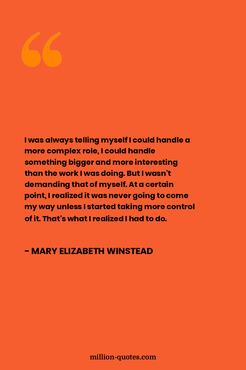 I was always telling myself I could handle a more complex role, I could handle something bigger and more interesting than the work I was doing. But I wasn't demanding that of myself. At a certain point, I realized it was never going to come my way unless I started taking more control of it. That's what I realized I had to do.