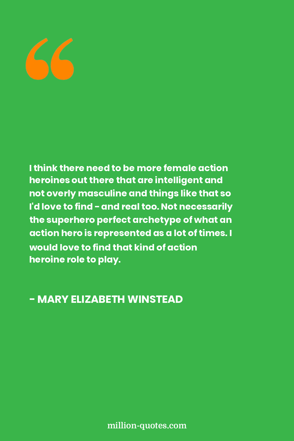I think there need to be more female action heroines out there that are intelligent and not overly masculine and things like that so I'd love to find - and real too. Not necessarily the superhero perfect archetype of what an action hero is represented as a lot of times. I would love to find that kind of action heroine role to play.