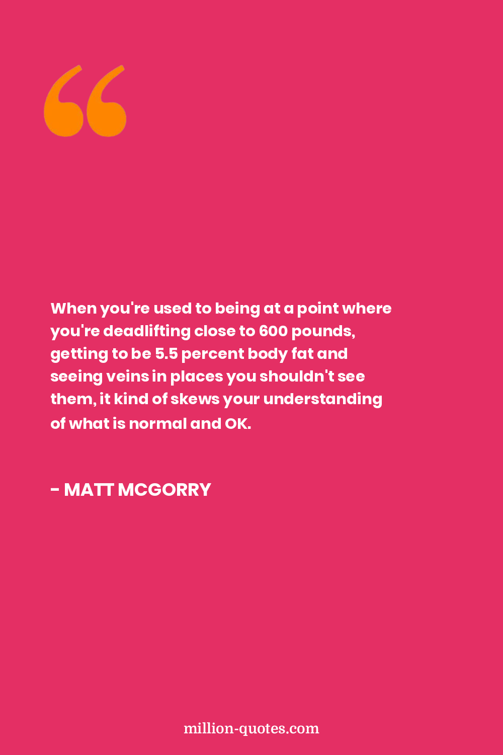 When you're used to being at a point where you're deadlifting close to 600 pounds, getting to be 5.5 percent body fat and seeing veins in places you shouldn't see them, it kind of skews your understanding of what is normal and OK.