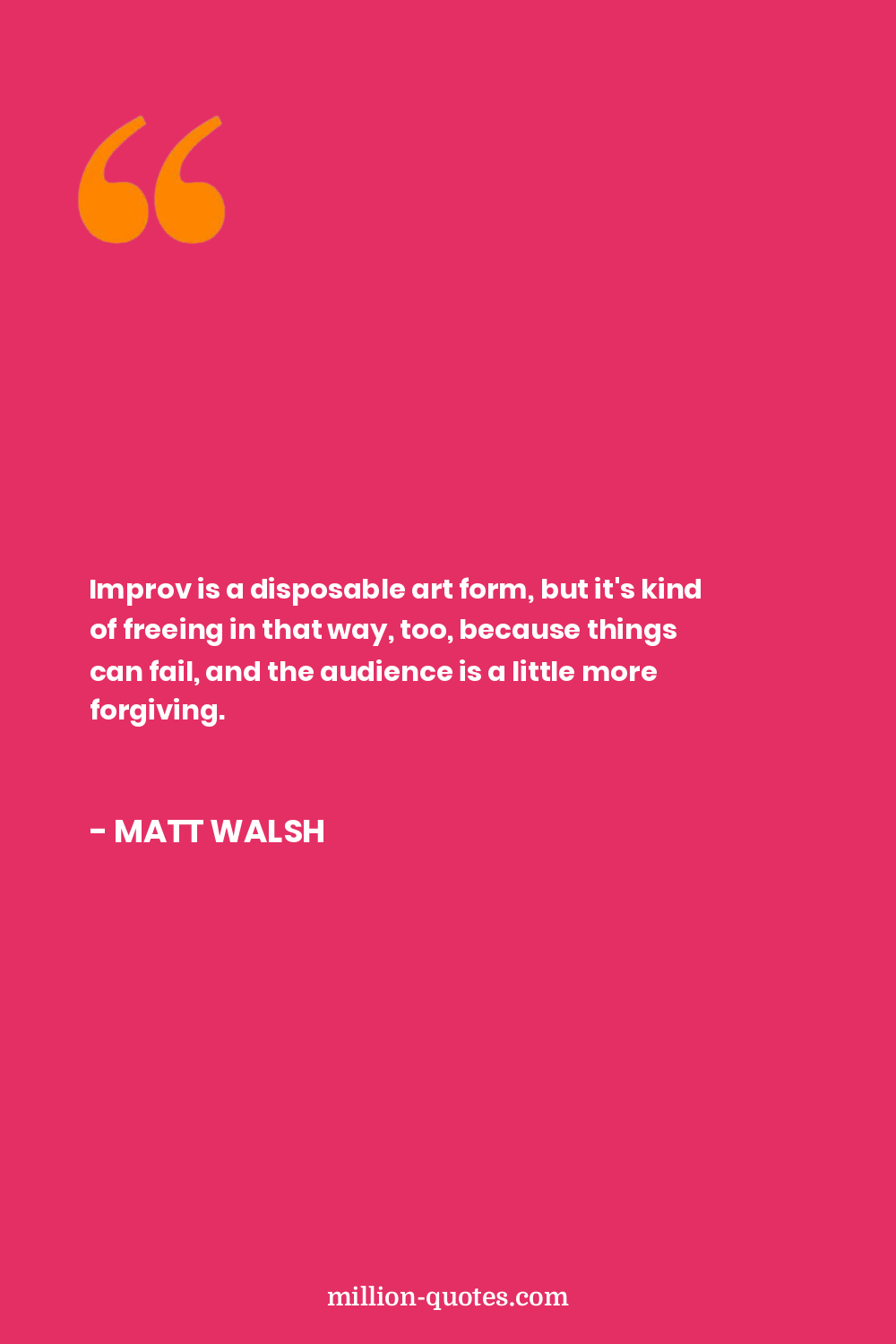 Improv is a disposable art form, but it's kind of freeing in that way, too, because things can fail, and the audience is a little more forgiving.