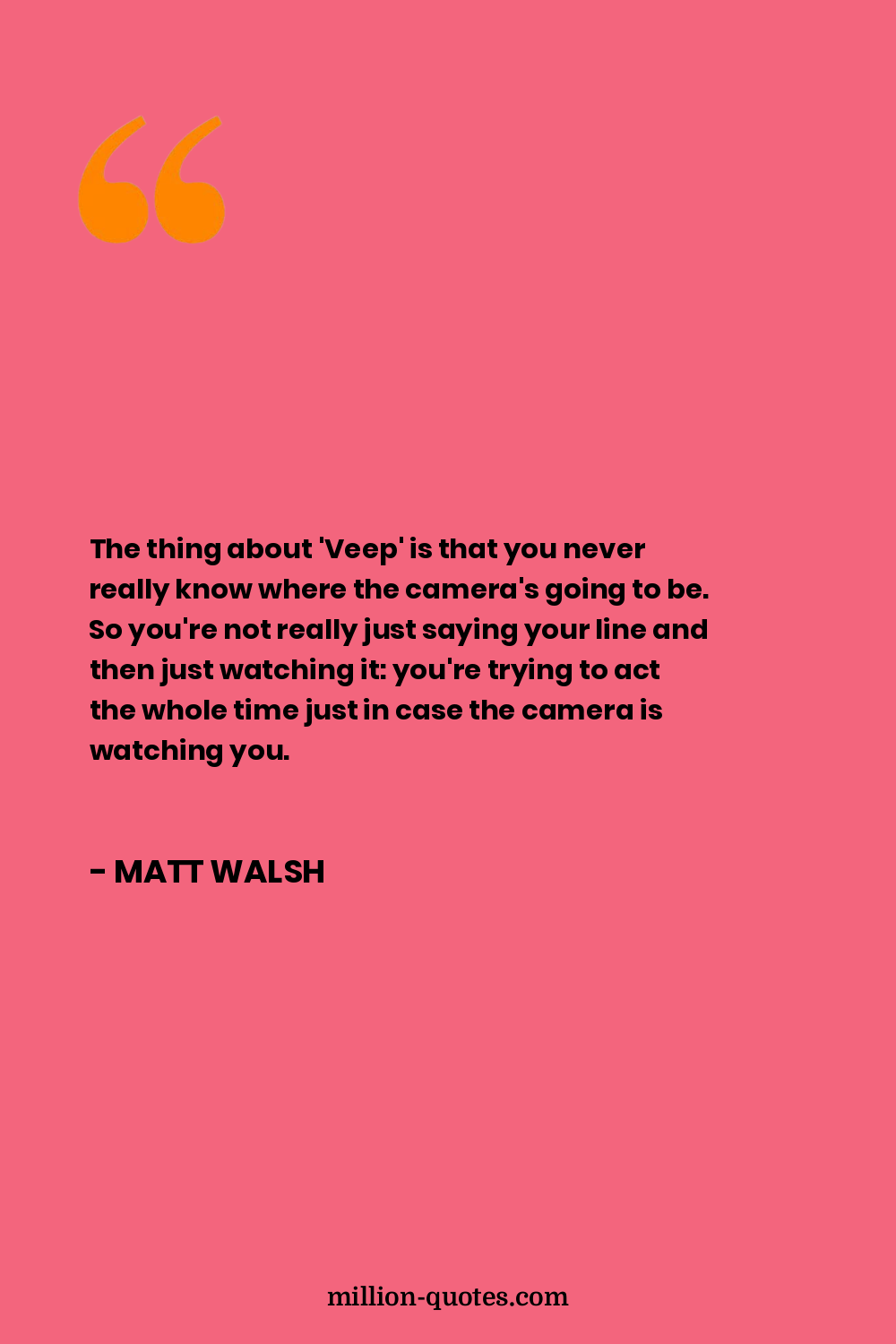 The thing about 'Veep' is that you never really know where the camera's going to be. So you're not really just saying your line and then just watching it: you're trying to act the whole time just in case the camera is watching you.