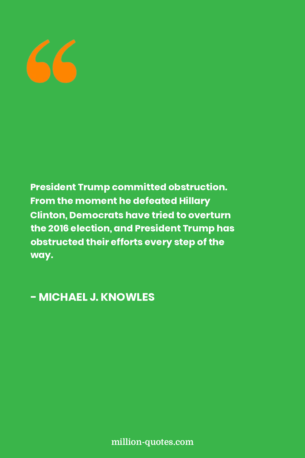 President Trump committed obstruction. From the moment he defeated Hillary Clinton, Democrats have tried to overturn the 2016 election, and President Trump has obstructed their efforts every step of the way.