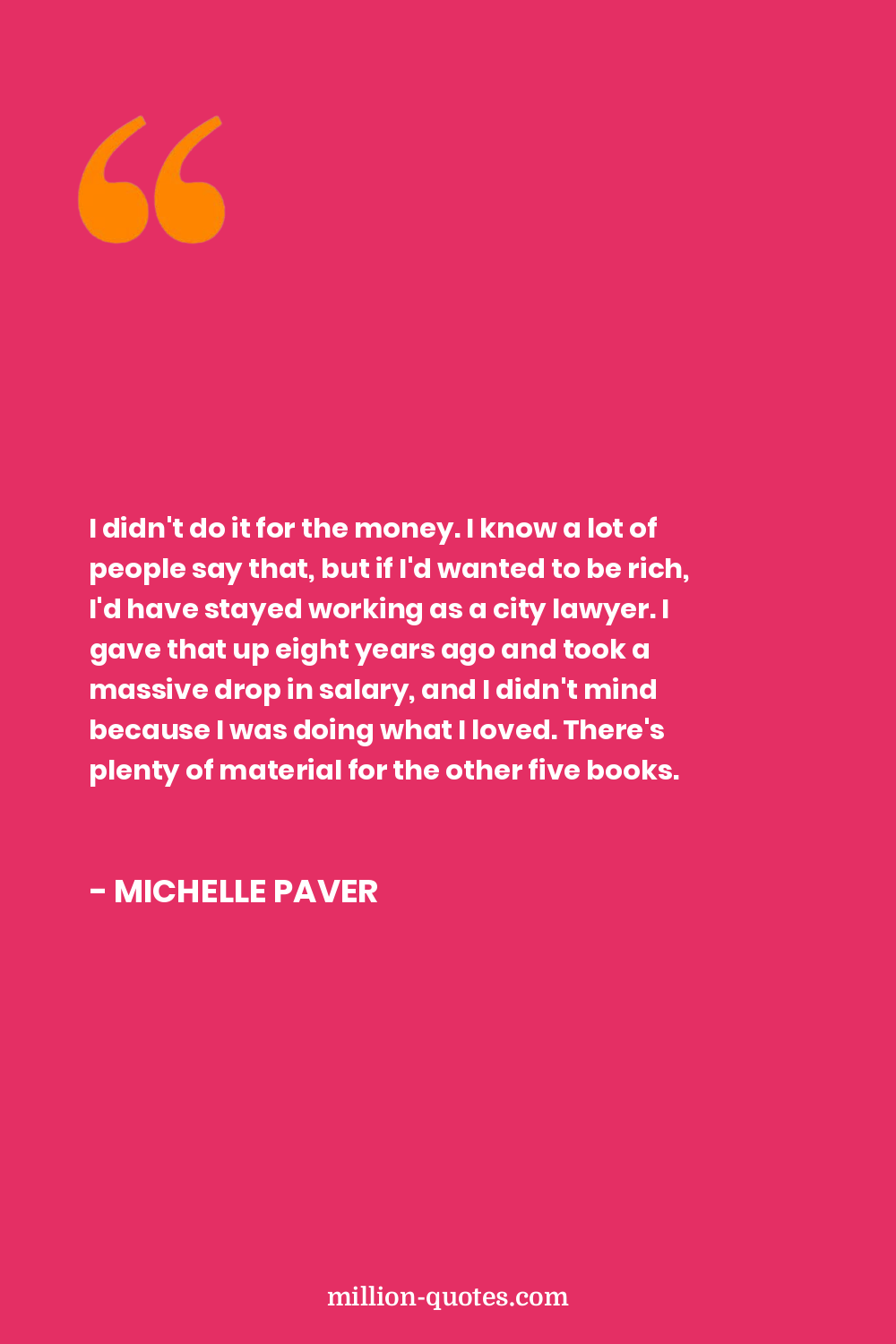 I didn't do it for the money. I know a lot of people say that, but if I'd wanted to be rich, I'd have stayed working as a city lawyer. I gave that up eight years ago and took a massive drop in salary, and I didn't mind because I was doing what I loved. There's plenty of material for the other five books.