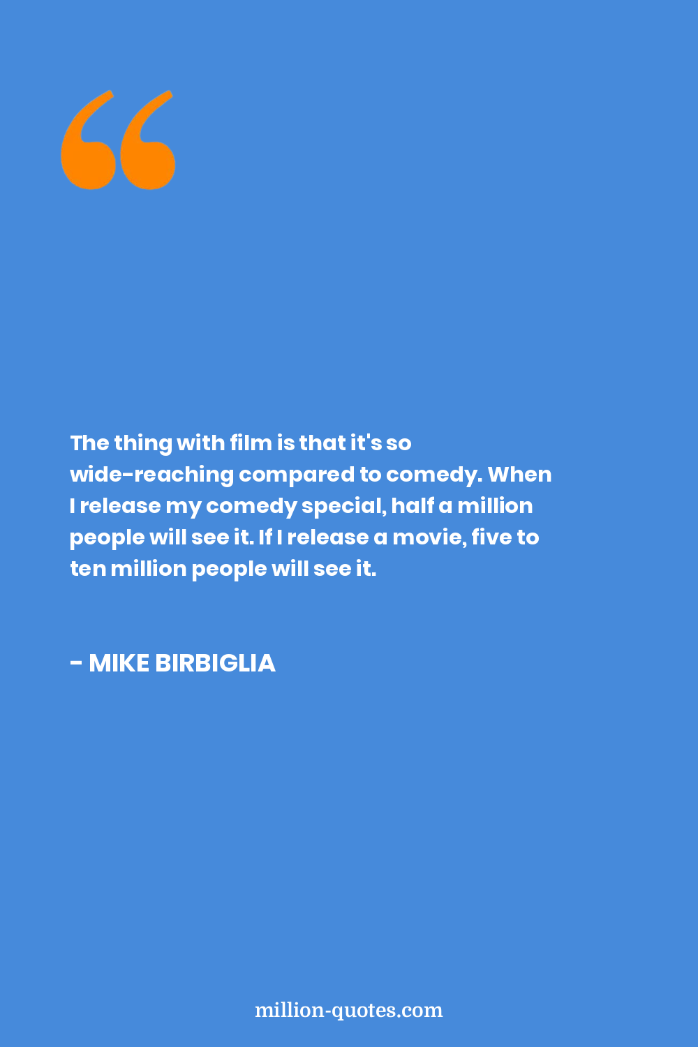 The thing with film is that it's so wide-reaching compared to comedy. When I release my comedy special, half a million people will see it. If I release a movie, five to ten million people will see it.