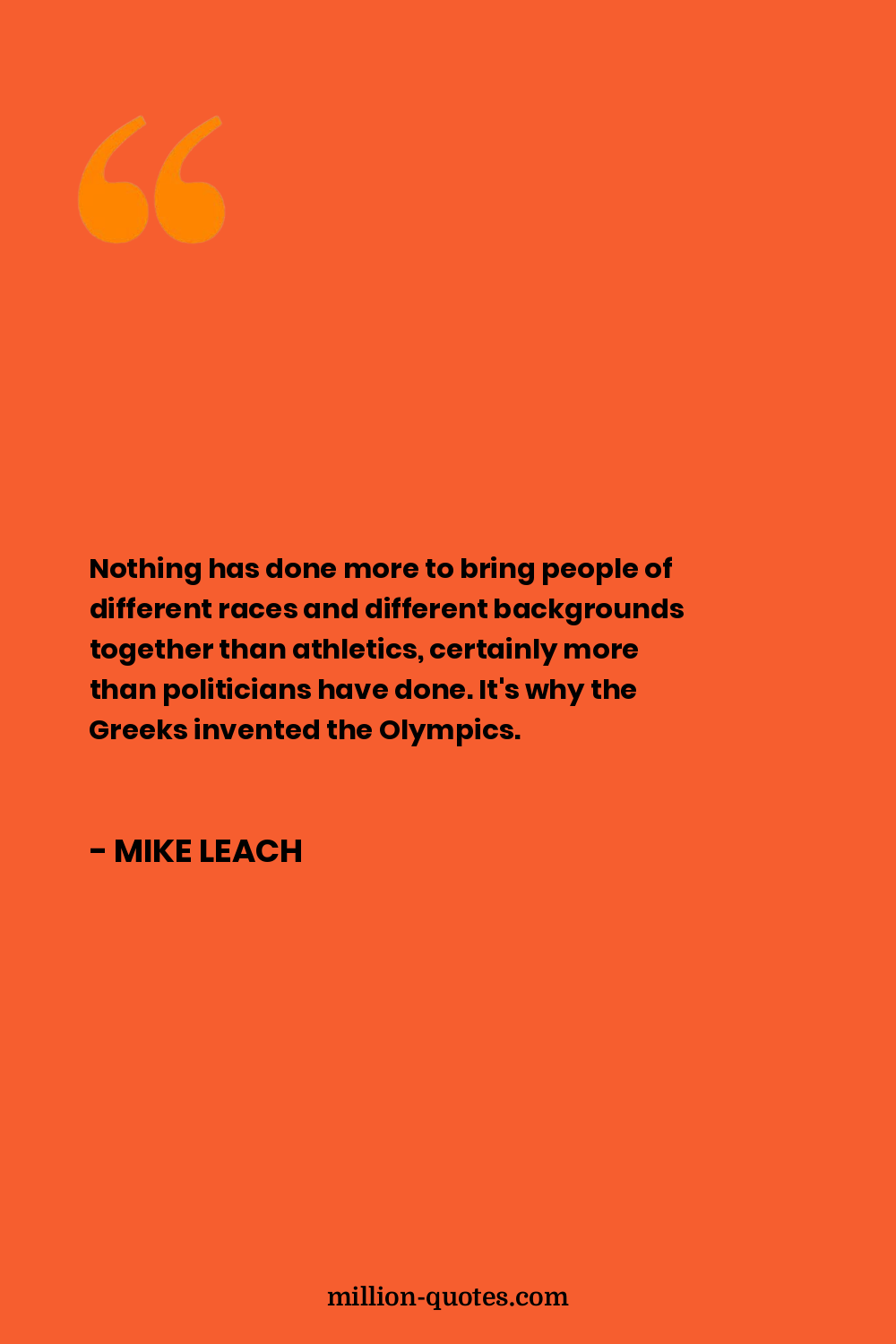 Nothing has done more to bring people of different races and different backgrounds together than athletics, certainly more than politicians have done. It's why the Greeks invented the Olympics.