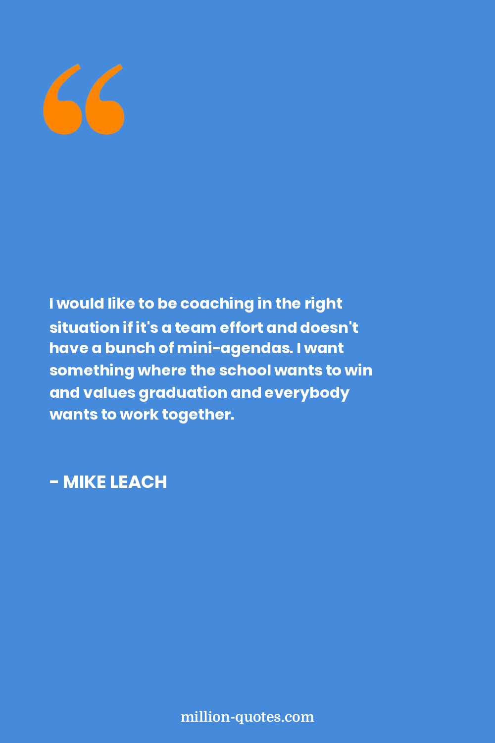 I would like to be coaching in the right situation if it's a team effort and doesn't have a bunch of mini-agendas. I want something where the school wants to win and values graduation and everybody wants to work together.