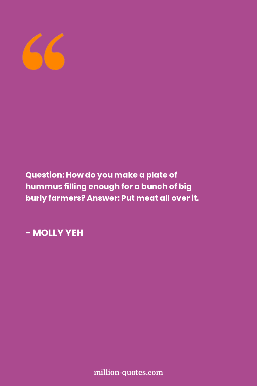 Question: How do you make a plate of hummus filling enough for a bunch of big burly farmers? Answer: Put meat all over it.