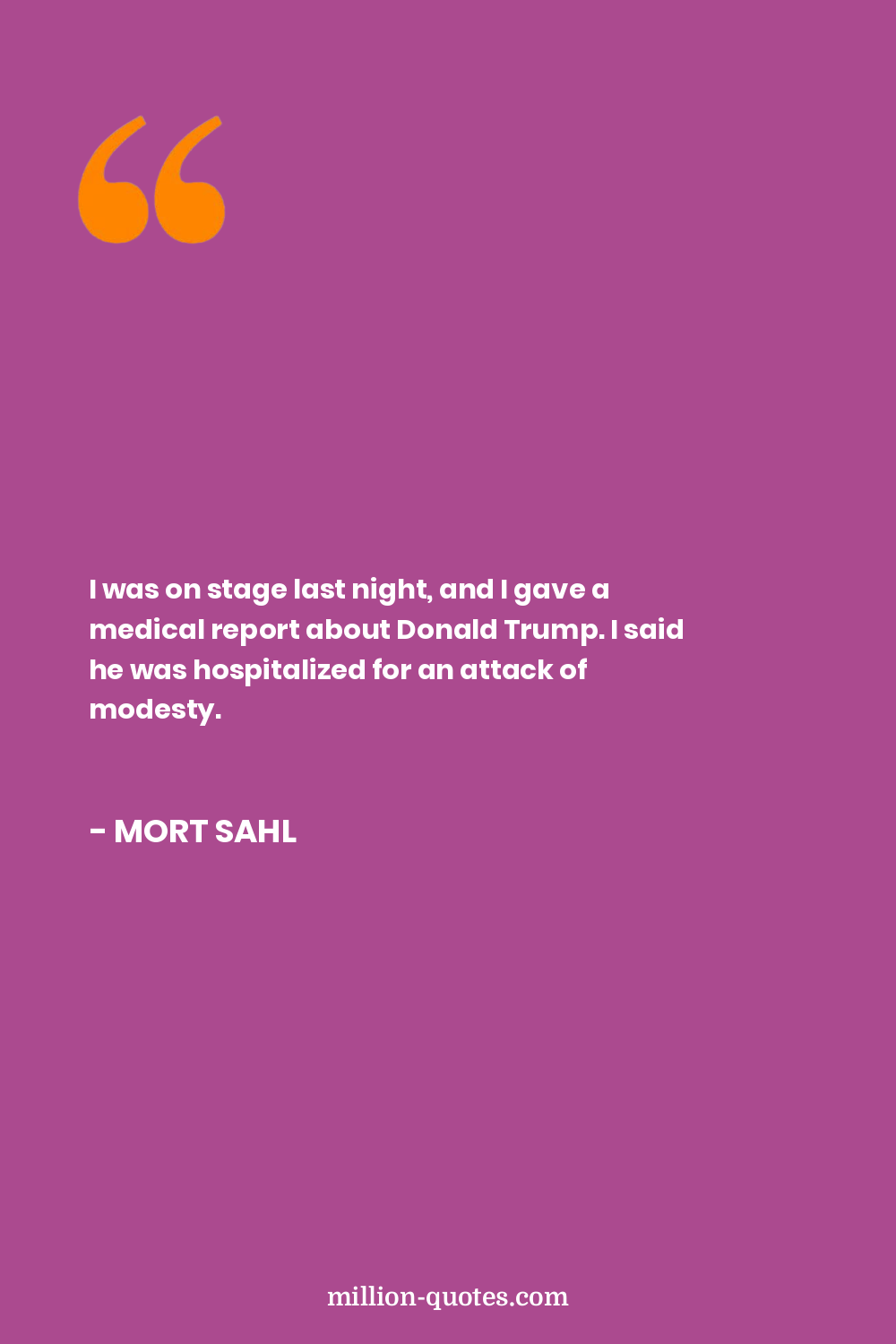 I was on stage last night, and I gave a medical report about Donald Trump. I said he was hospitalized for an attack of modesty.