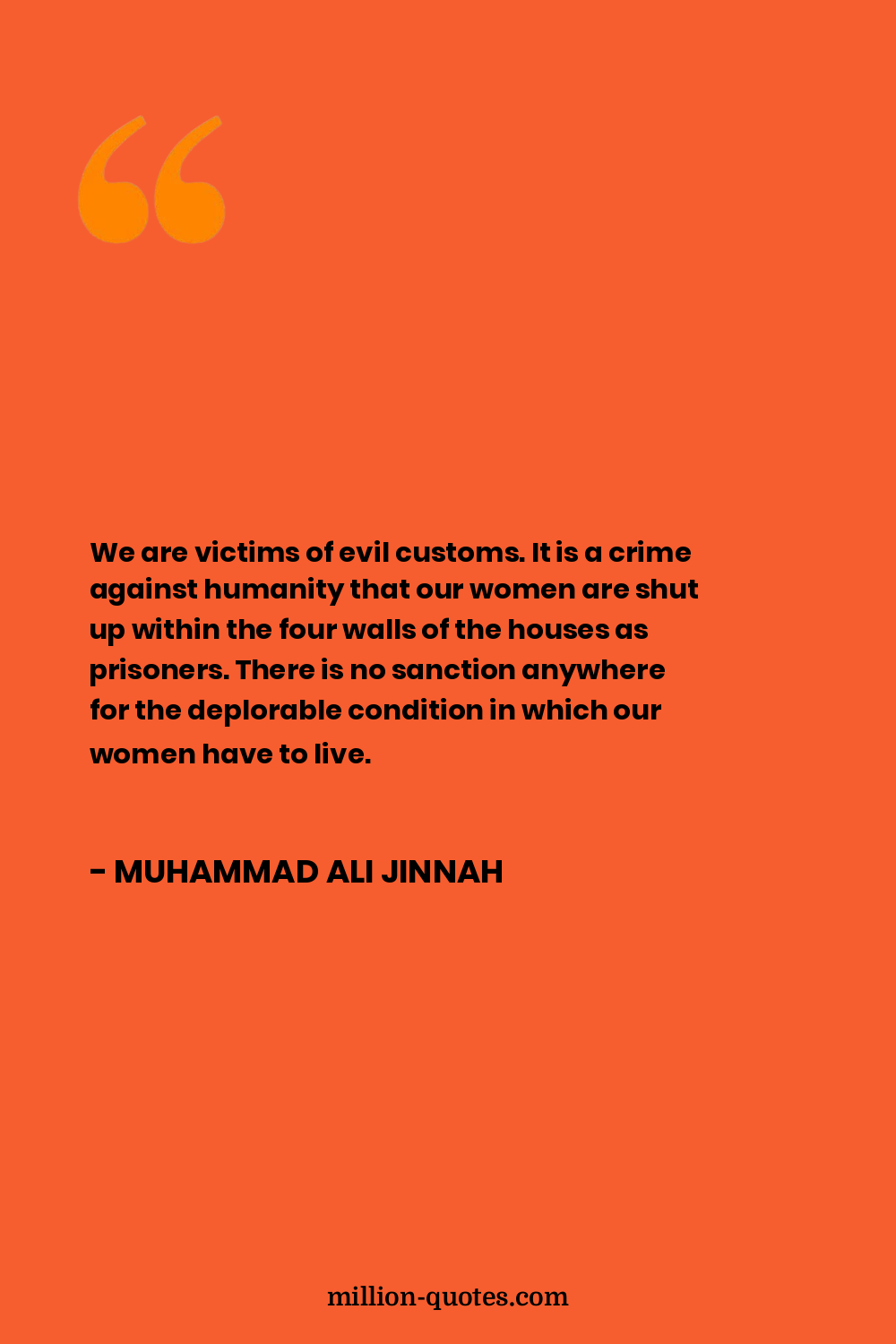 We are victims of evil customs. It is a crime against humanity that our women are shut up within the four walls of the houses as prisoners. There is no sanction anywhere for the deplorable condition in which our women have to live.