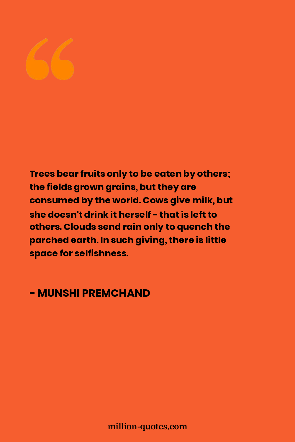 Trees bear fruits only to be eaten by others; the fields grown grains, but they are consumed by the world. Cows give milk, but she doesn't drink it herself - that is left to others. Clouds send rain only to quench the parched earth. In such giving, there is little space for selfishness.