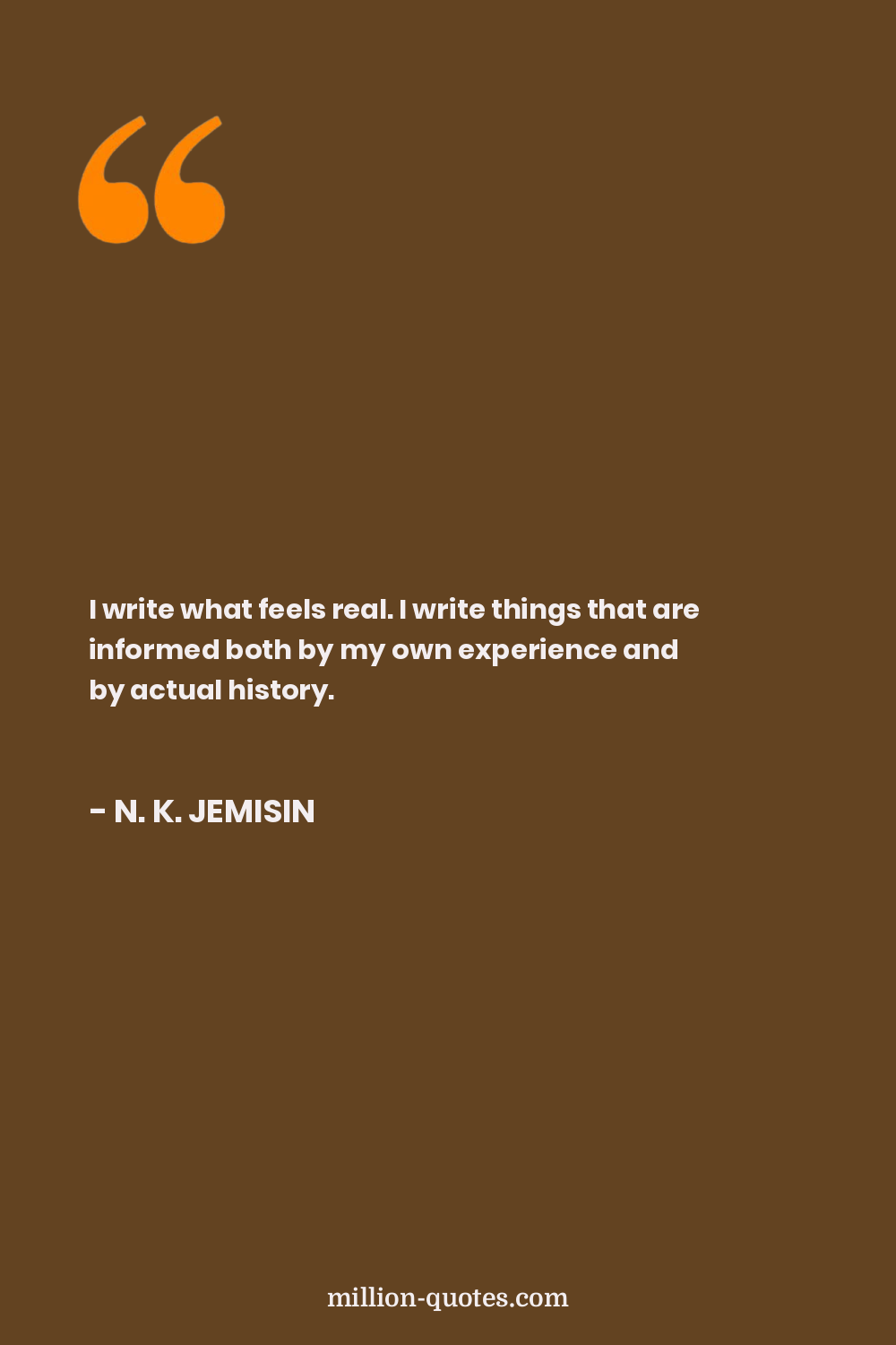 I write what feels real. I write things that are informed both by my own experience and by actual history.