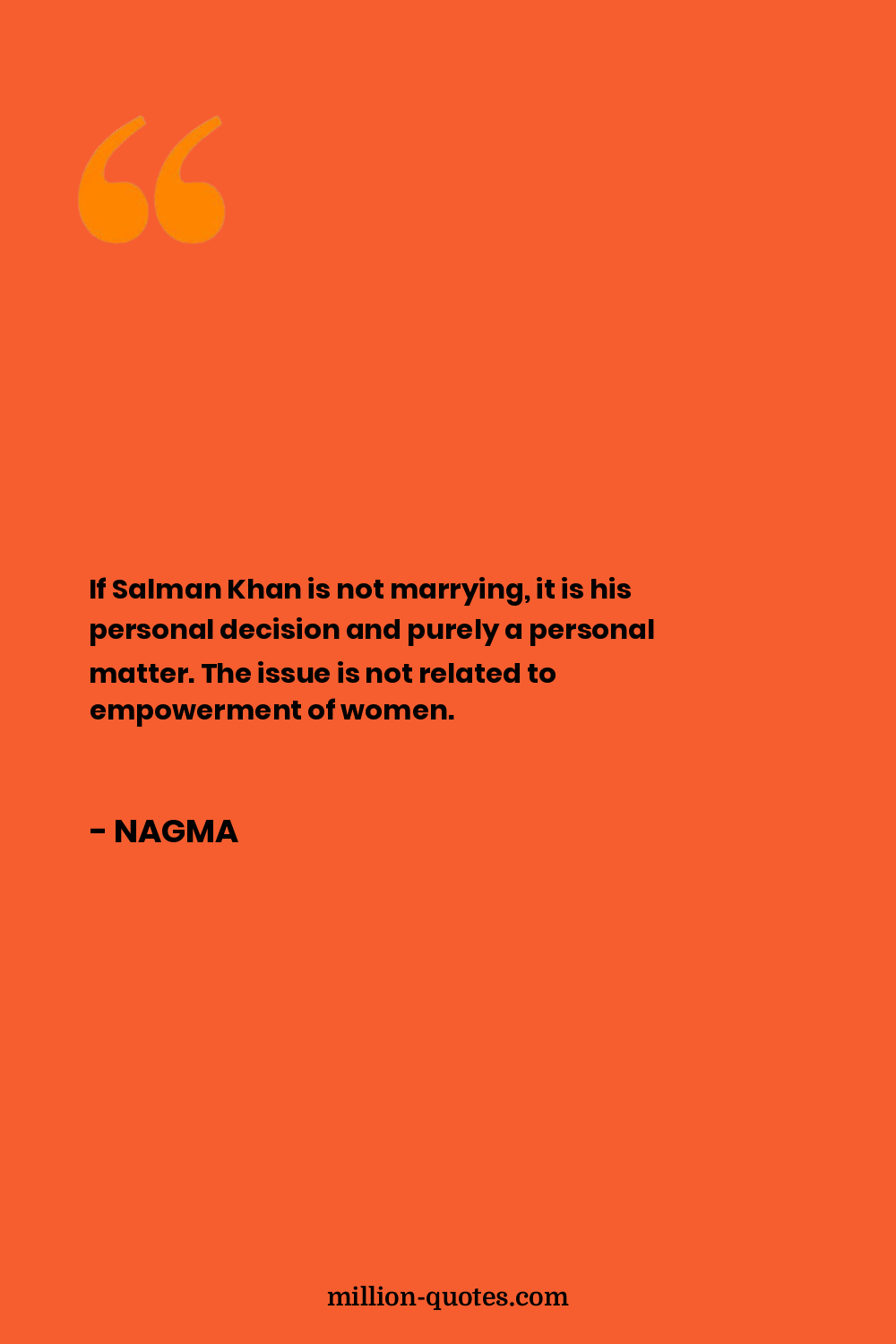 If Salman Khan is not marrying, it is his personal decision and purely a personal matter. The issue is not related to empowerment of women.