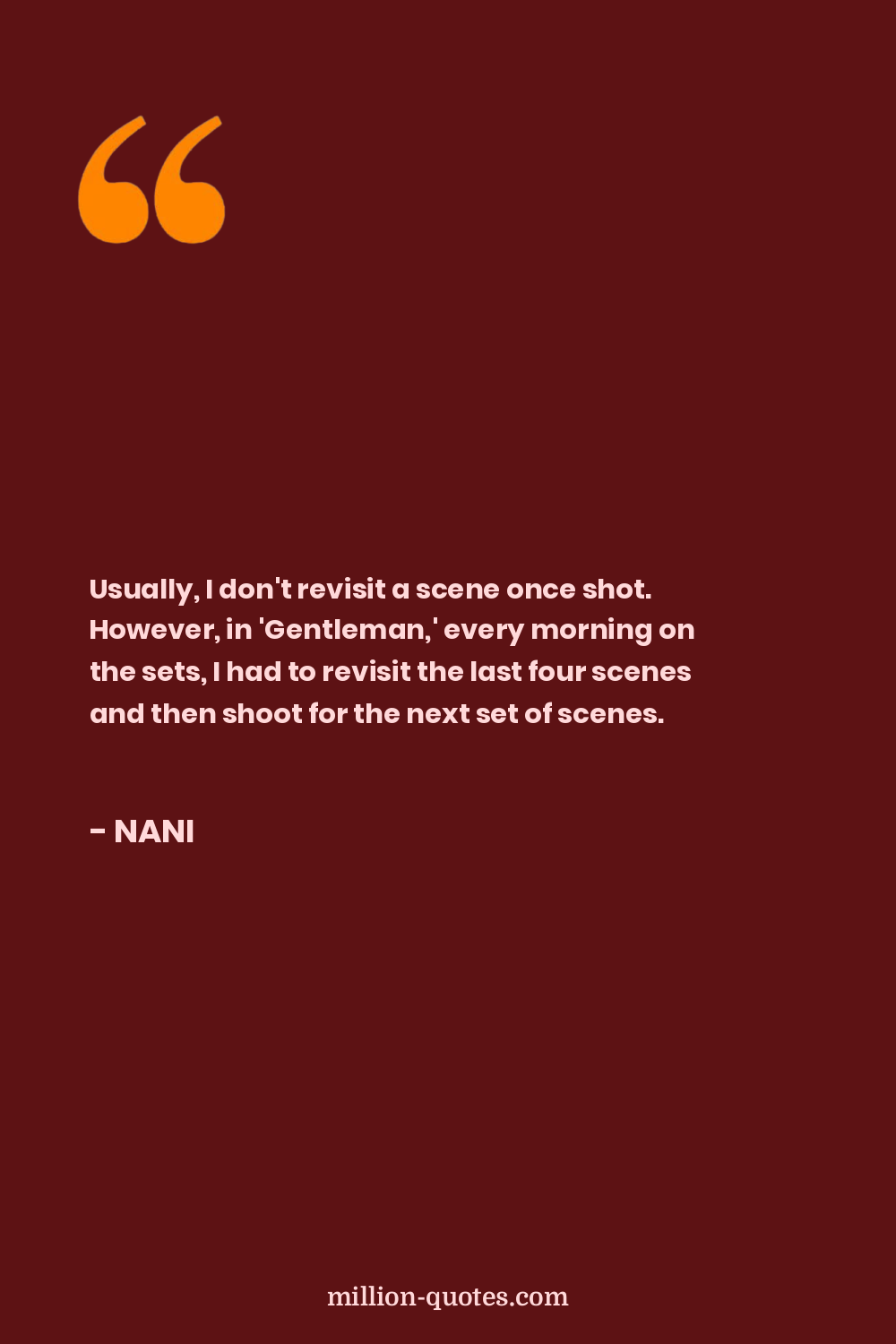 Usually, I don't revisit a scene once shot. However, in 'Gentleman,' every morning on the sets, I had to revisit the last four scenes and then shoot for the next set of scenes.