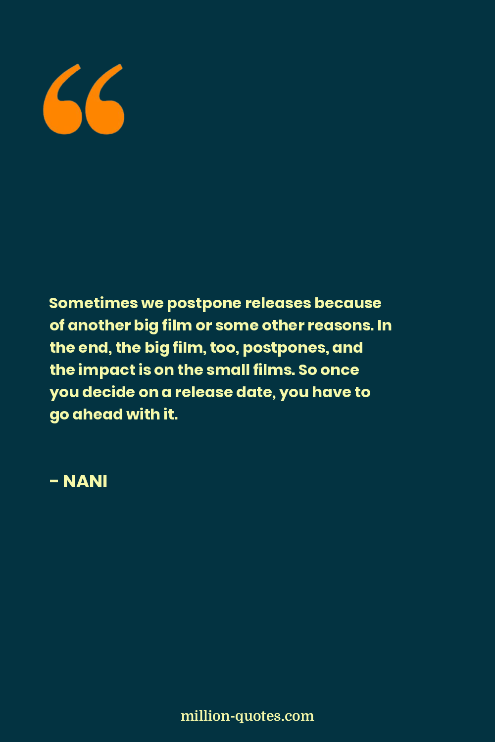 Sometimes we postpone releases because of another big film or some other reasons. In the end, the big film, too, postpones, and the impact is on the small films. So once you decide on a release date, you have to go ahead with it.