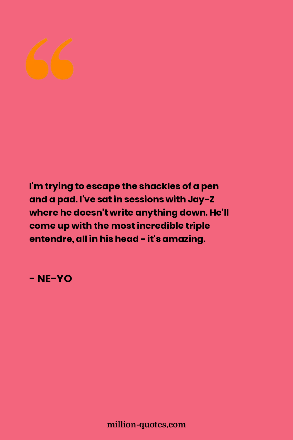 I'm trying to escape the shackles of a pen and a pad. I've sat in sessions with Jay-Z where he doesn't write anything down. He'll come up with the most incredible triple entendre, all in his head - it's amazing.