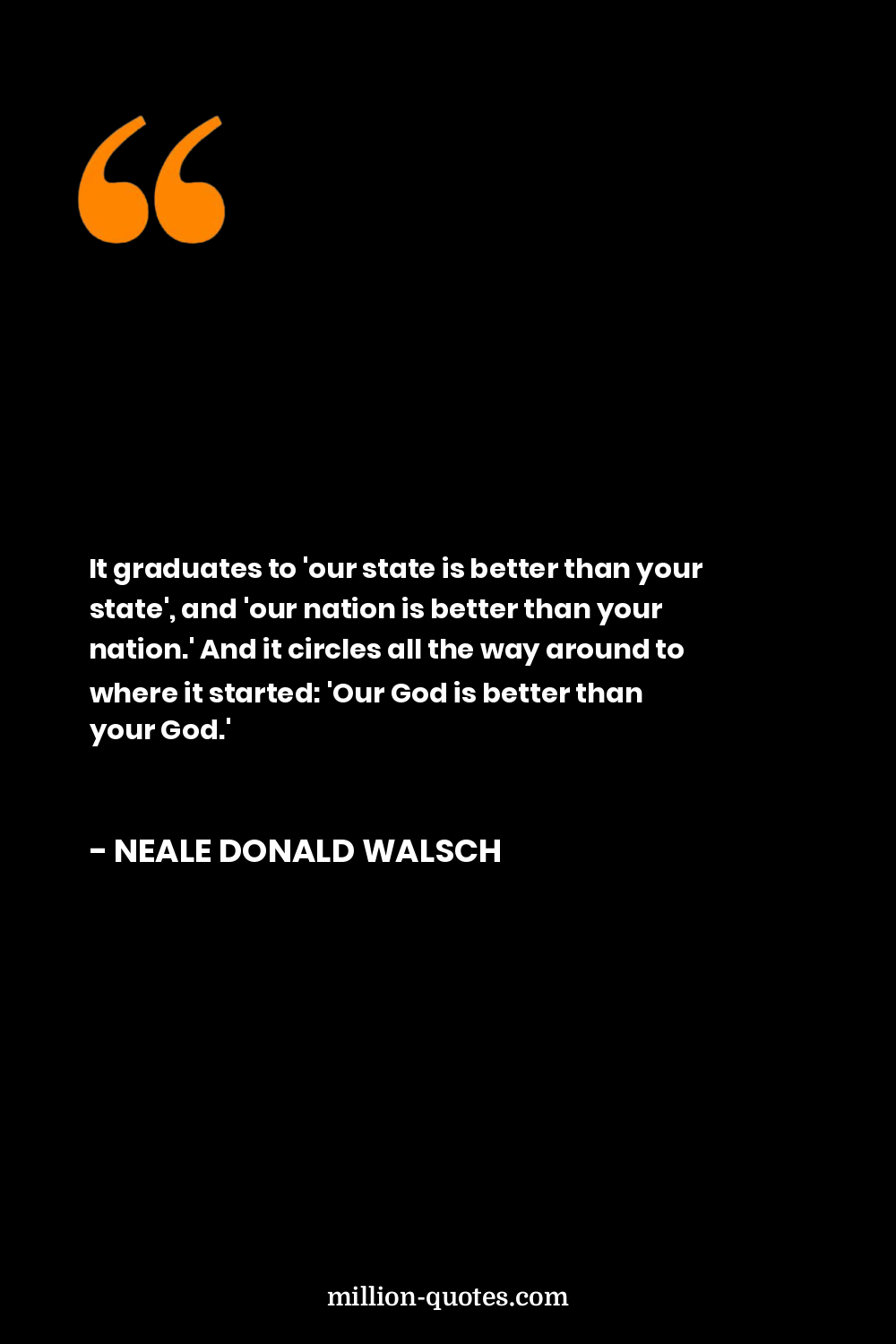 It graduates to 'our state is better than your state', and 'our nation is better than your nation.' And it circles all the way around to where it started: 'Our God is better than your God.'