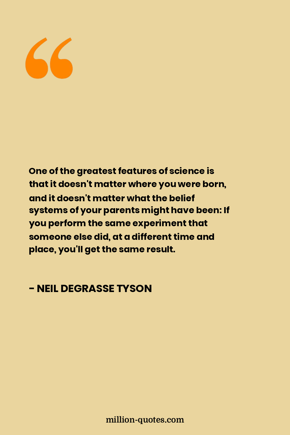 One of the greatest features of science is that it doesn't matter where you were born, and it doesn't matter what the belief systems of your parents might have been: If you perform the same experiment that someone else did, at a different time and place, you'll get the same result.
