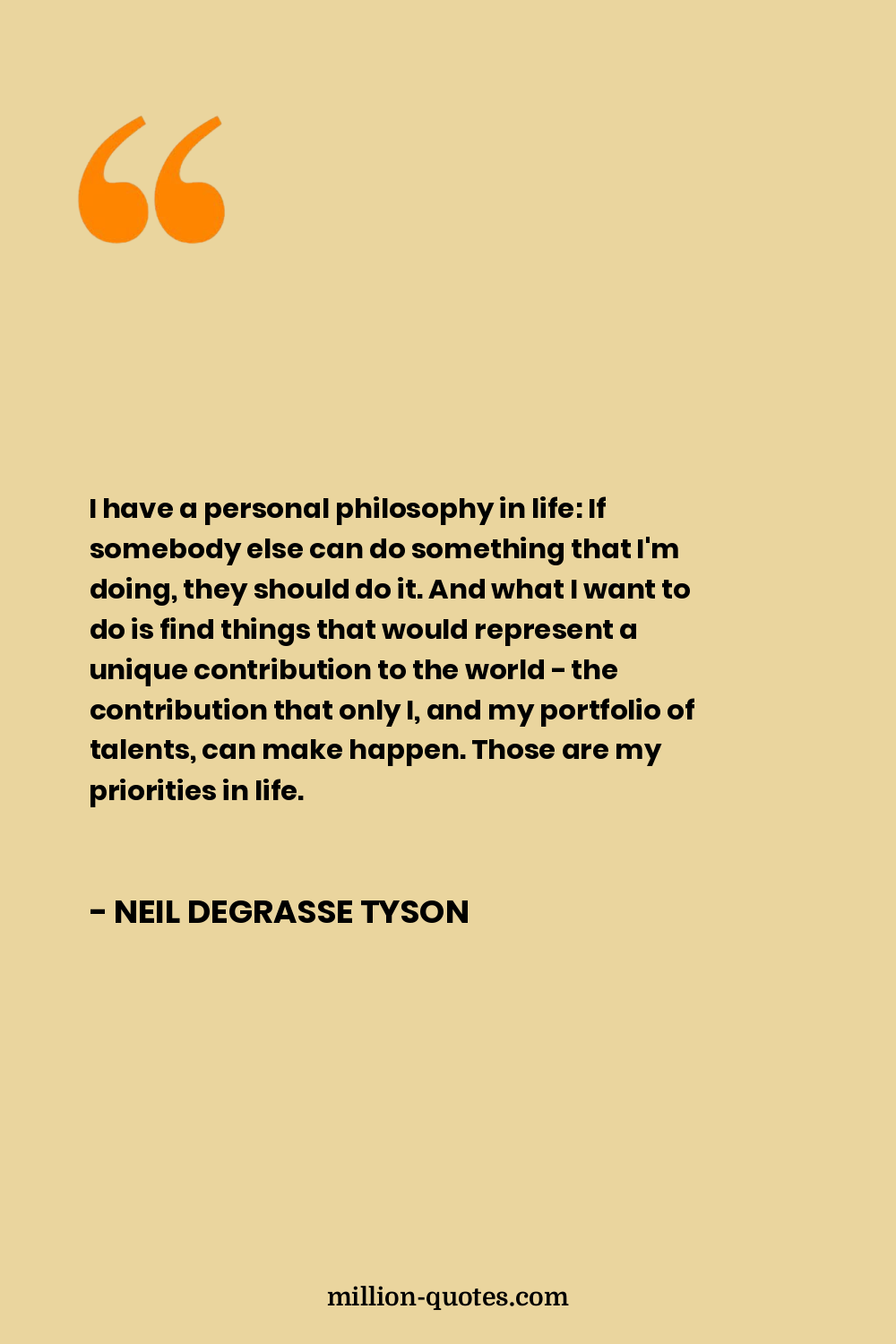 I have a personal philosophy in life: If somebody else can do something that I'm doing, they should do it. And what I want to do is find things that would represent a unique contribution to the world - the contribution that only I, and my portfolio of talents, can make happen. Those are my priorities in life.