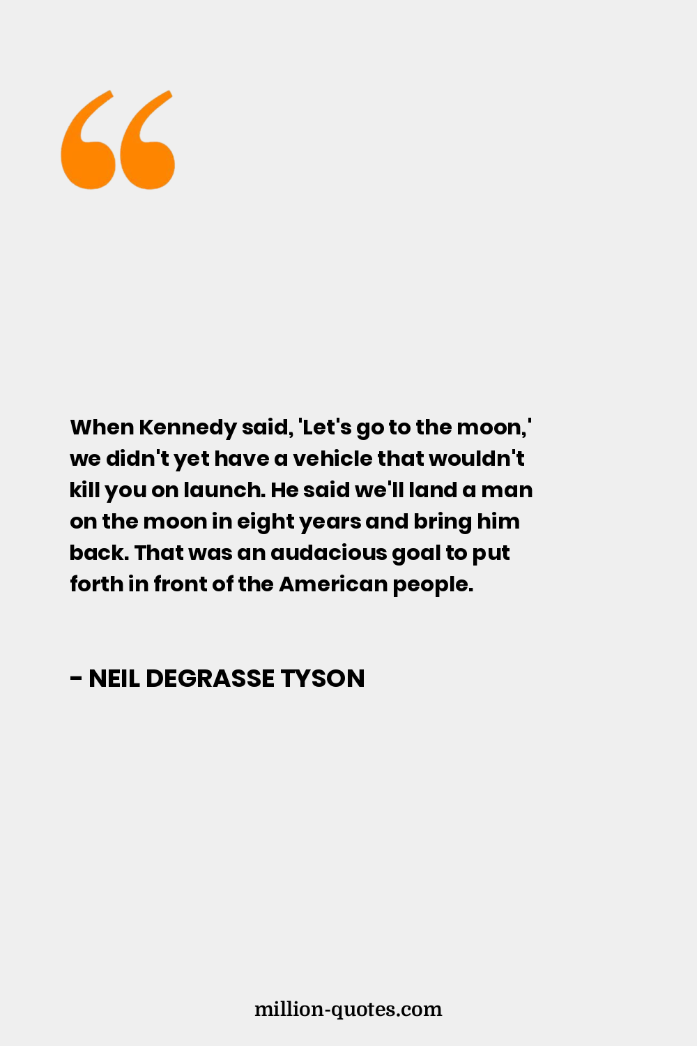 When Kennedy said, 'Let's go to the moon,' we didn't yet have a vehicle that wouldn't kill you on launch. He said we'll land a man on the moon in eight years and bring him back. That was an audacious goal to put forth in front of the American people.