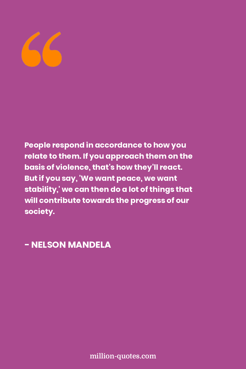 People respond in accordance to how you relate to them. If you approach them on the basis of violence, that's how they'll react. But if you say, 'We want peace, we want stability,' we can then do a lot of things that will contribute towards the progress of our society.