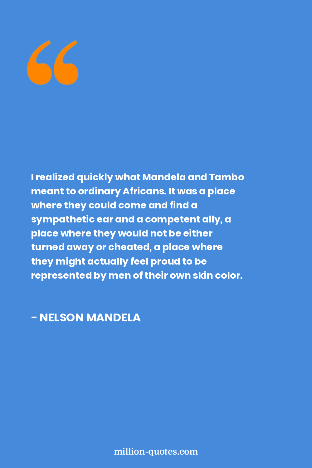 I realized quickly what Mandela and Tambo meant to ordinary Africans. It was a place where they could come and find a sympathetic ear and a competent ally, a place where they would not be either turned away or cheated, a place where they might actually feel proud to be represented by men of their own skin color.