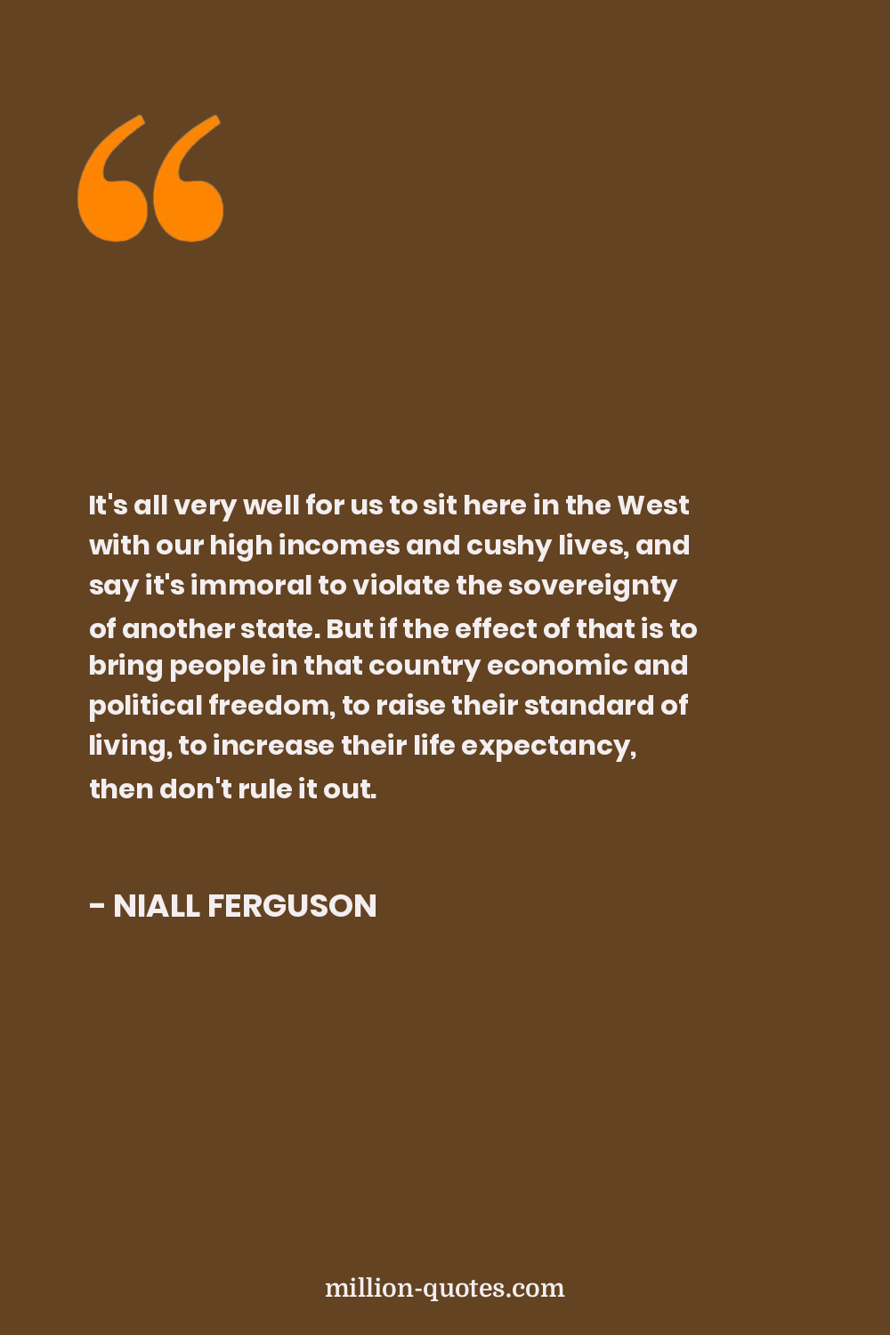 It's all very well for us to sit here in the West with our high incomes and cushy lives, and say it's immoral to violate the sovereignty of another state. But if the effect of that is to bring people in that country economic and political freedom, to raise their standard of living, to increase their life expectancy, then don't rule it out.