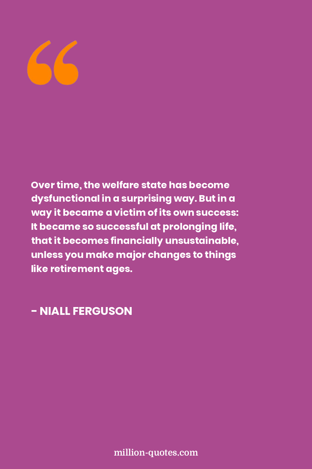 Over time, the welfare state has become dysfunctional in a surprising way. But in a way it became a victim of its own success: It became so successful at prolonging life, that it becomes financially unsustainable, unless you make major changes to things like retirement ages.