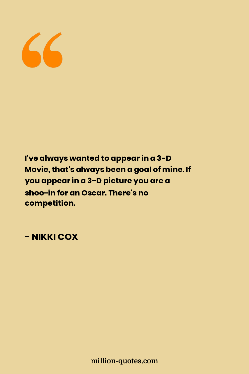 I've always wanted to appear in a 3-D Movie, that's always been a goal of mine. If you appear in a 3-D picture you are a shoo-in for an Oscar. There's no competition.