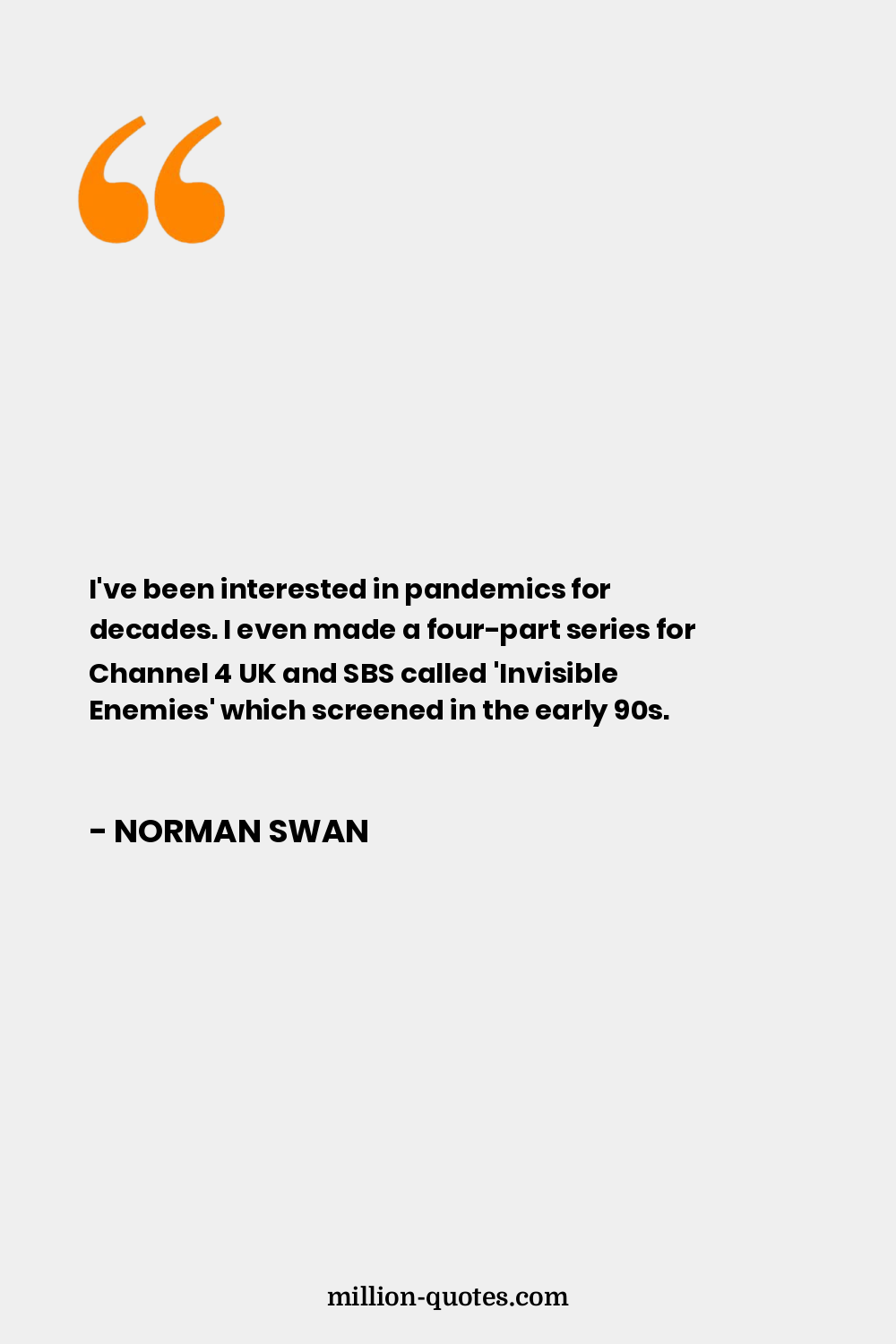 I've been interested in pandemics for decades. I even made a four-part series for Channel 4 UK and SBS called 'Invisible Enemies' which screened in the early 90s.