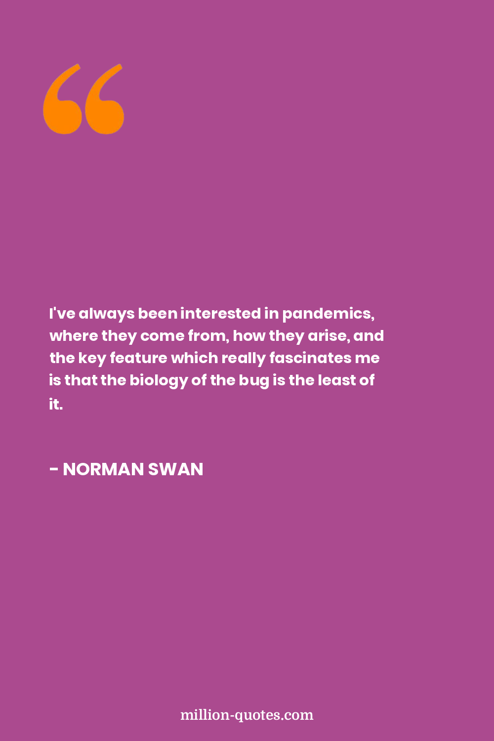 I've always been interested in pandemics, where they come from, how they arise, and the key feature which really fascinates me is that the biology of the bug is the least of it.
