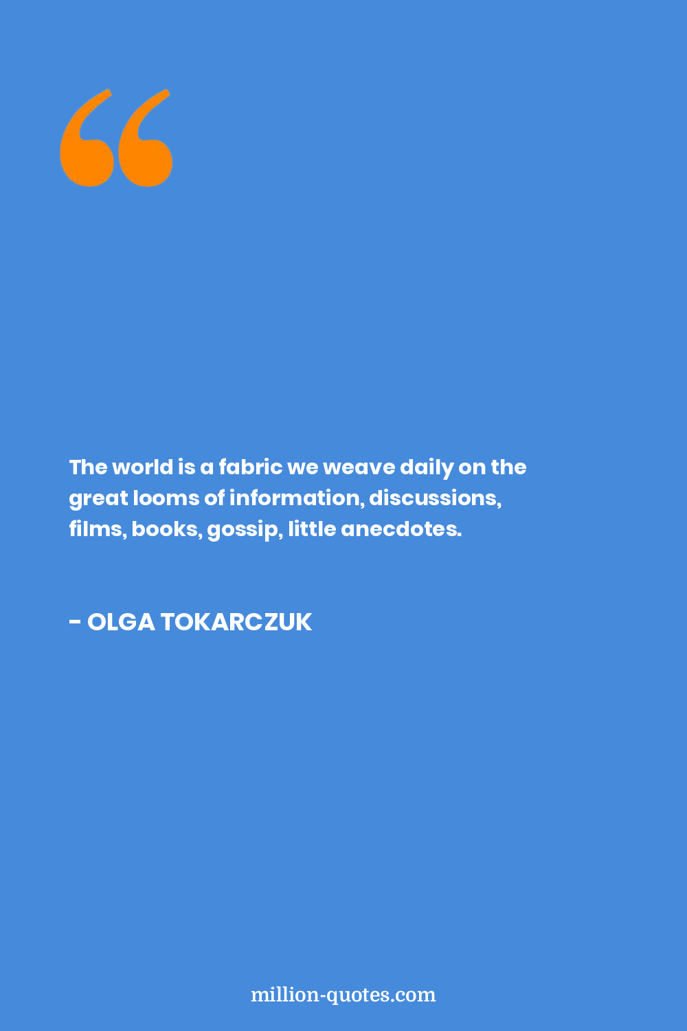 The world is a fabric we weave daily on the great looms of information, discussions, films, books, gossip, little anecdotes.