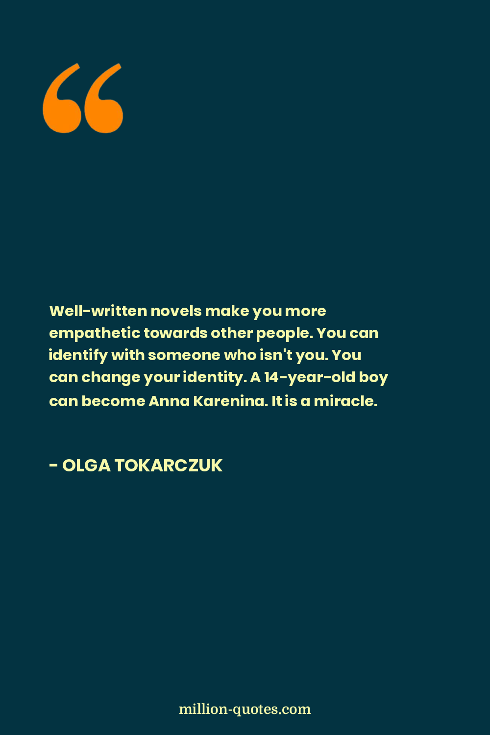 Well-written novels make you more empathetic towards other people. You can identify with someone who isn't you. You can change your identity. A 14-year-old boy can become Anna Karenina. It is a miracle.