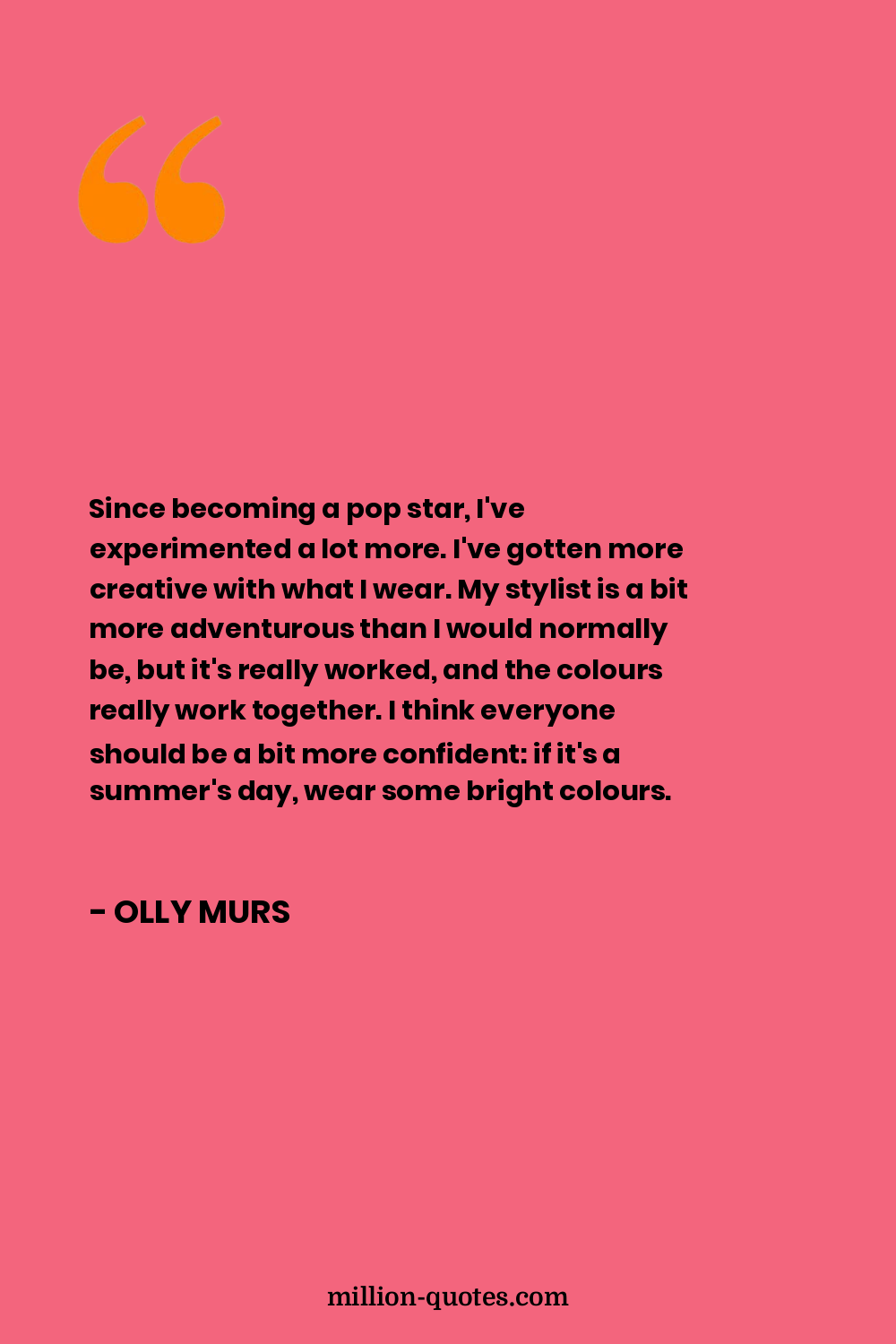 Since becoming a pop star, I've experimented a lot more. I've gotten more creative with what I wear. My stylist is a bit more adventurous than I would normally be, but it's really worked, and the colours really work together. I think everyone should be a bit more confident: if it's a summer's day, wear some bright colours.