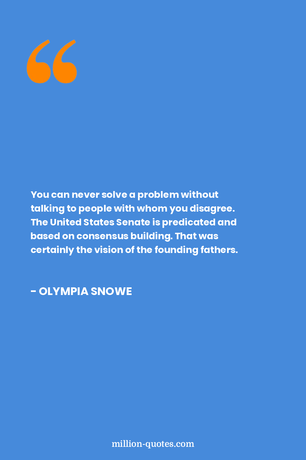 You can never solve a problem without talking to people with whom you disagree. The United States Senate is predicated and based on consensus building. That was certainly the vision of the founding fathers.