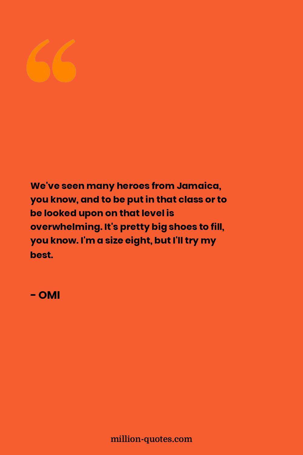 We've seen many heroes from Jamaica, you know, and to be put in that class or to be looked upon on that level is overwhelming. It's pretty big shoes to fill, you know. I'm a size eight, but I'll try my best.