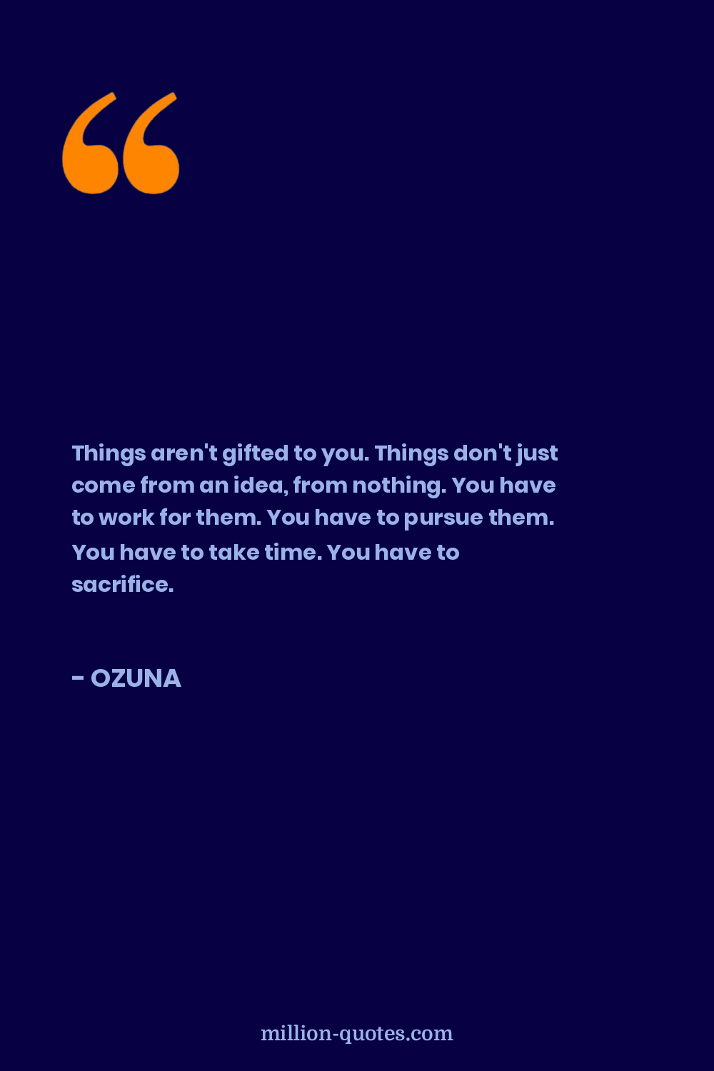 Things aren't gifted to you. Things don't just come from an idea, from nothing. You have to work for them. You have to pursue them. You have to take time. You have to sacrifice.