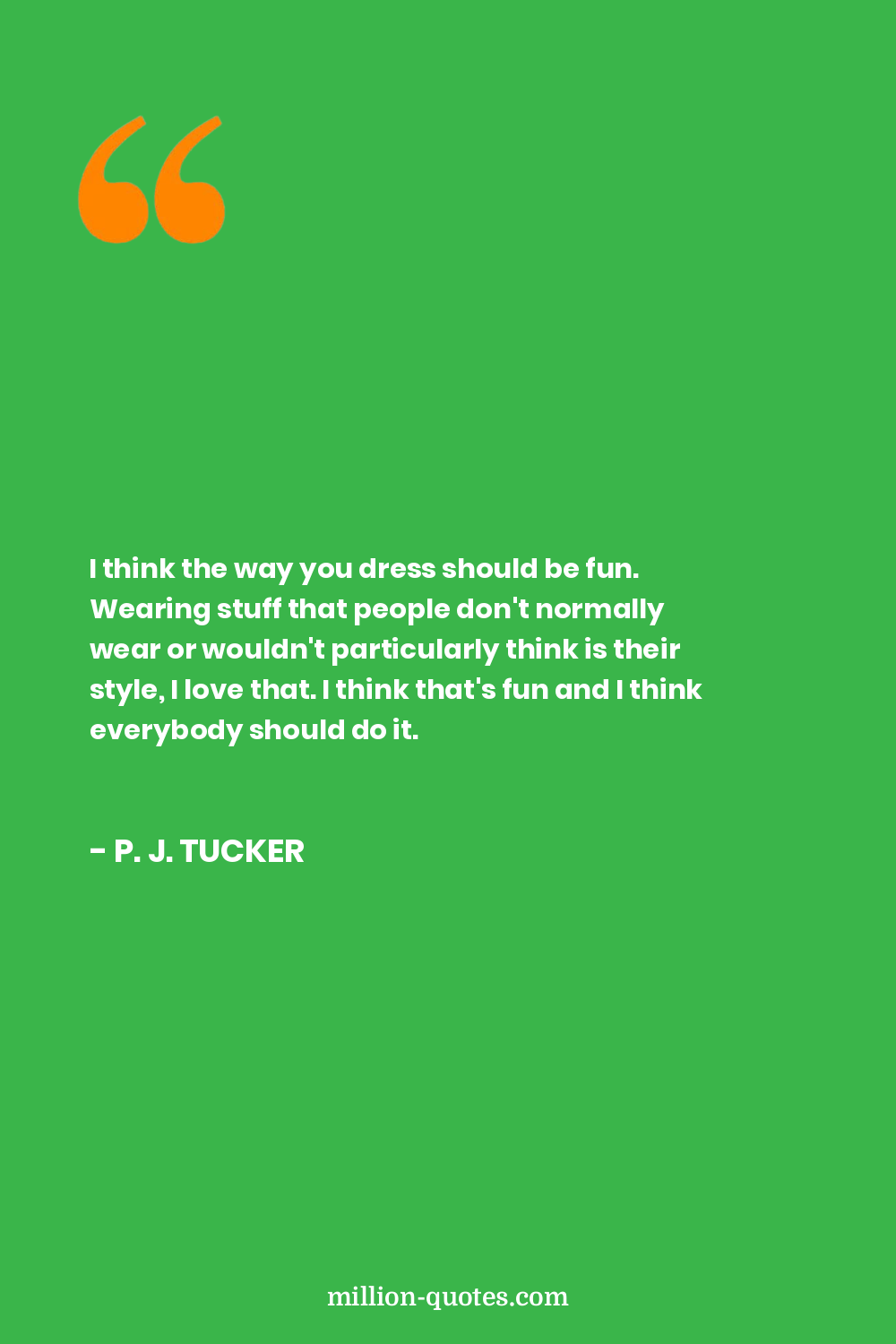 I think the way you dress should be fun. Wearing stuff that people don't normally wear or wouldn't particularly think is their style, I love that. I think that's fun and I think everybody should do it.