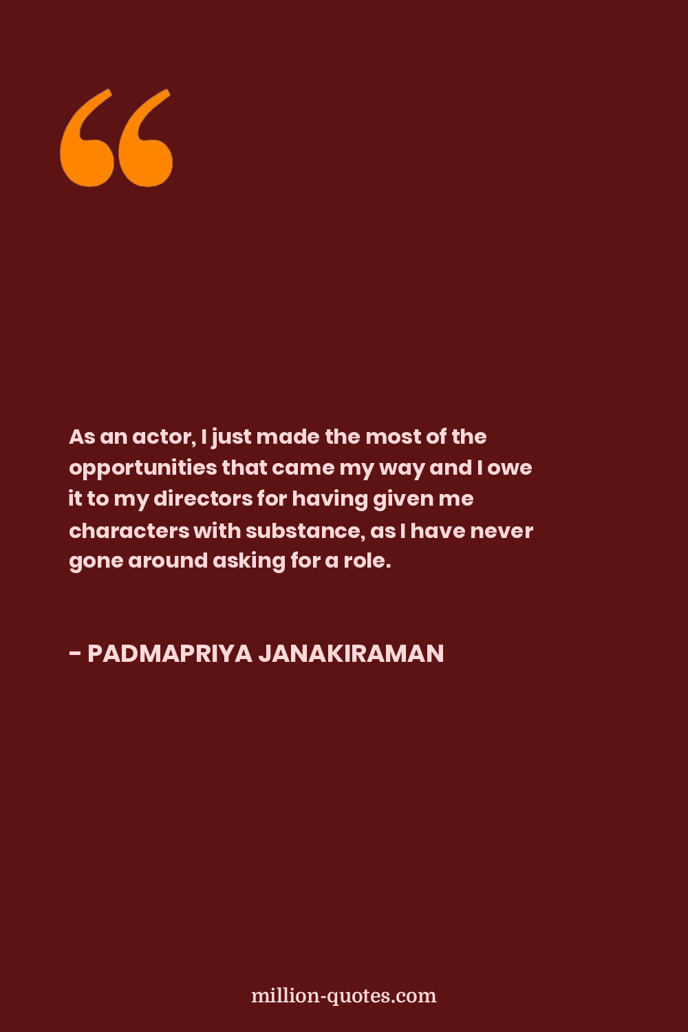 As an actor, I just made the most of the opportunities that came my way and I owe it to my directors for having given me characters with substance, as I have never gone around asking for a role.