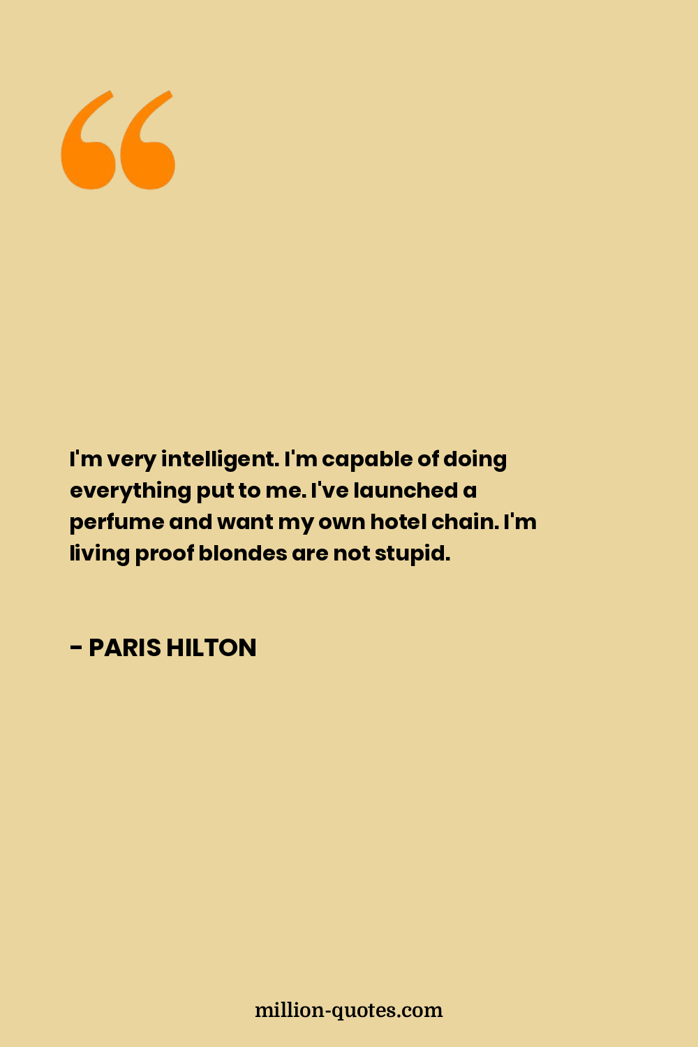 I'm very intelligent. I'm capable of doing everything put to me. I've launched a perfume and want my own hotel chain. I'm living proof blondes are not stupid.