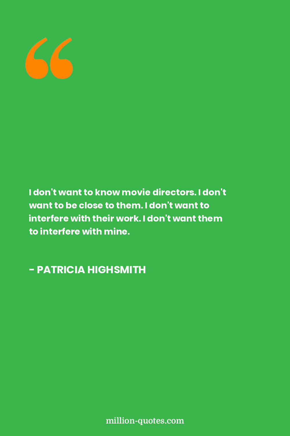 I don't want to know movie directors. I don't want to be close to them. I don't want to interfere with their work. I don't want them to interfere with mine.