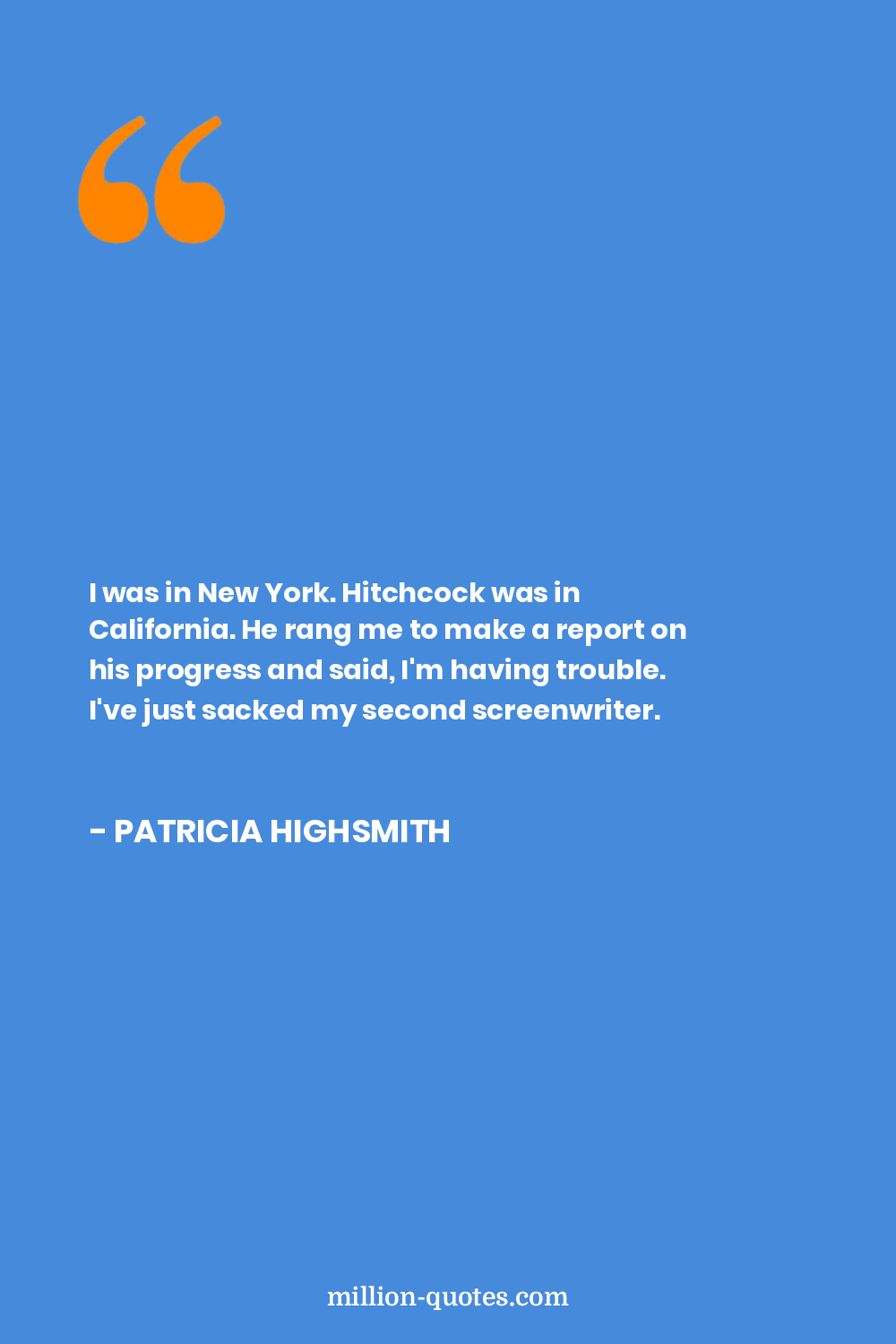 I was in New York. Hitchcock was in California. He rang me to make a report on his progress and said, I'm having trouble. I've just sacked my second screenwriter.