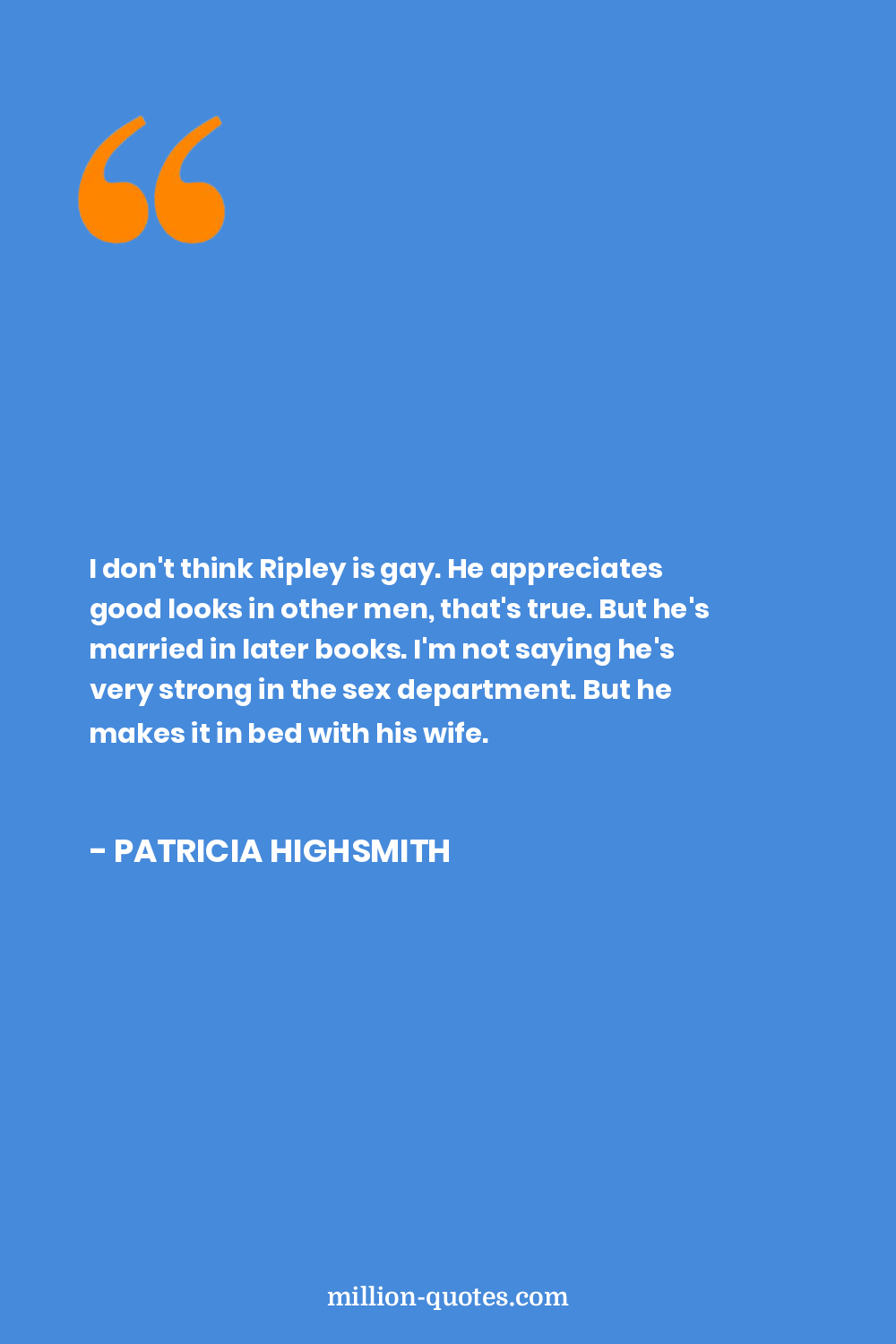 I don't think Ripley is gay. He appreciates good looks in other men, that's true. But he's married in later books. I'm not saying he's very strong in the sex department. But he makes it in bed with his wife.