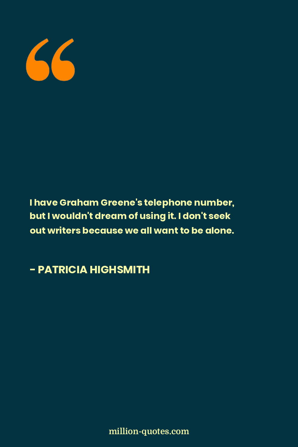 I have Graham Greene's telephone number, but I wouldn't dream of using it. I don't seek out writers because we all want to be alone.
