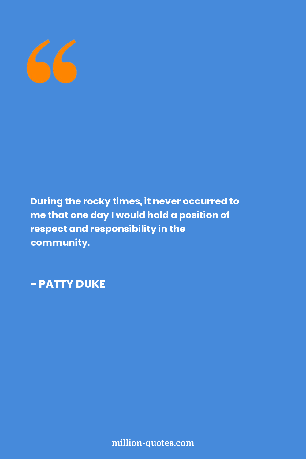 During the rocky times, it never occurred to me that one day I would hold a position of respect and responsibility in the community.
